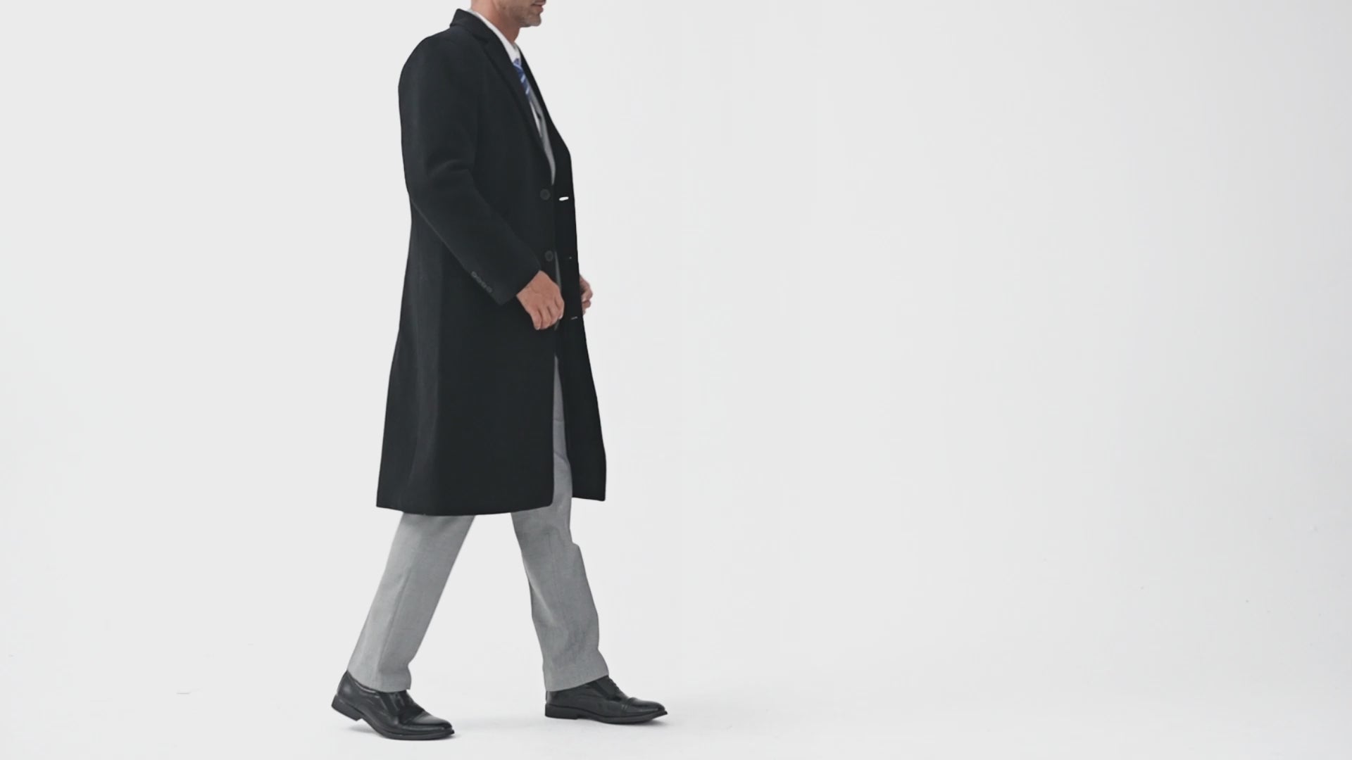This timeless long overcoat features a three-button fastening and includes a single chest pocket, two hip pockets, and two inside pockets for added convenience. Crafted from a blend of 70% wool, 25% polyester, and 5% cashmere, it is fully lined with luxurious black satin for a touch of sophistication. The coat is designed with a centre vent at the back for ease of movement and measures 46 inches in length.