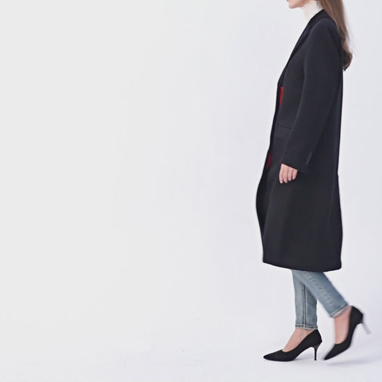 Women's Black Wool Cashmere Covert Overcoat